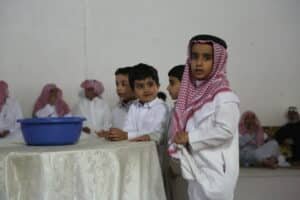 حيث التقاء ابناء العم ببعضهم للسلام وتبادل التهاني تناول وجبة الجريش والفطور،